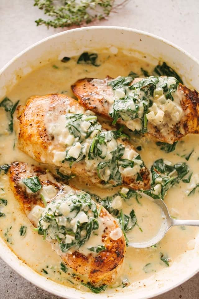 Easy Chicken Breasts Recipe With Creamed Spinach Sauce