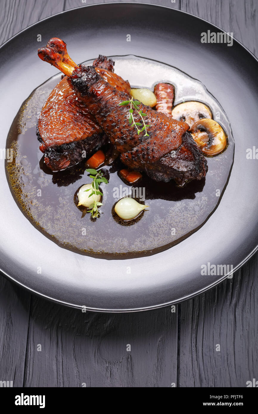Close Up Of A Portion Of Coq Au Vin Tasty Chicken Braised