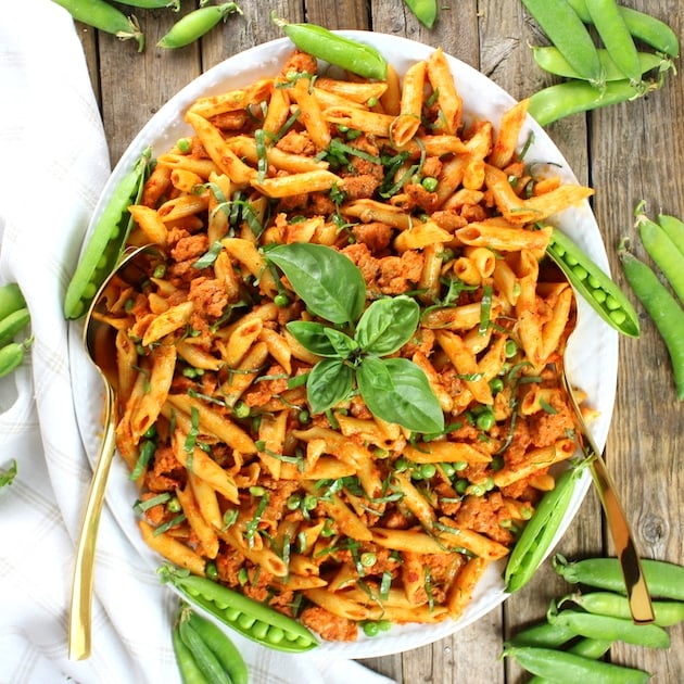 Spicy Chicken Pasta And Peas With Sun Dried Tomato Sauce
