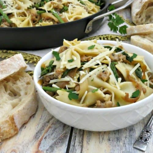 Bowtie Pasta With Chicken Italian Sausage Asparagus Caramelized Onions