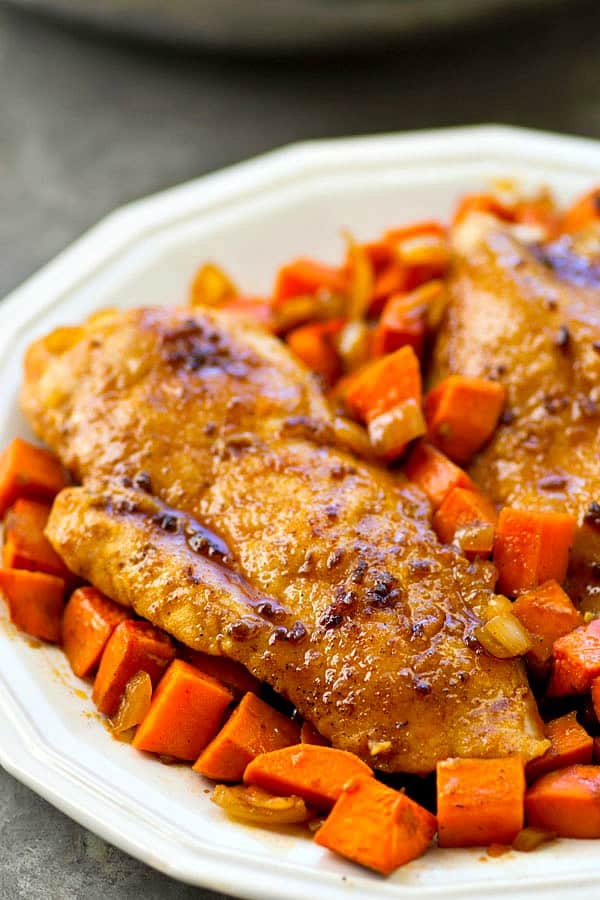 Maple Glazed Skillet Chicken Breasts With Sweet Potato Hash