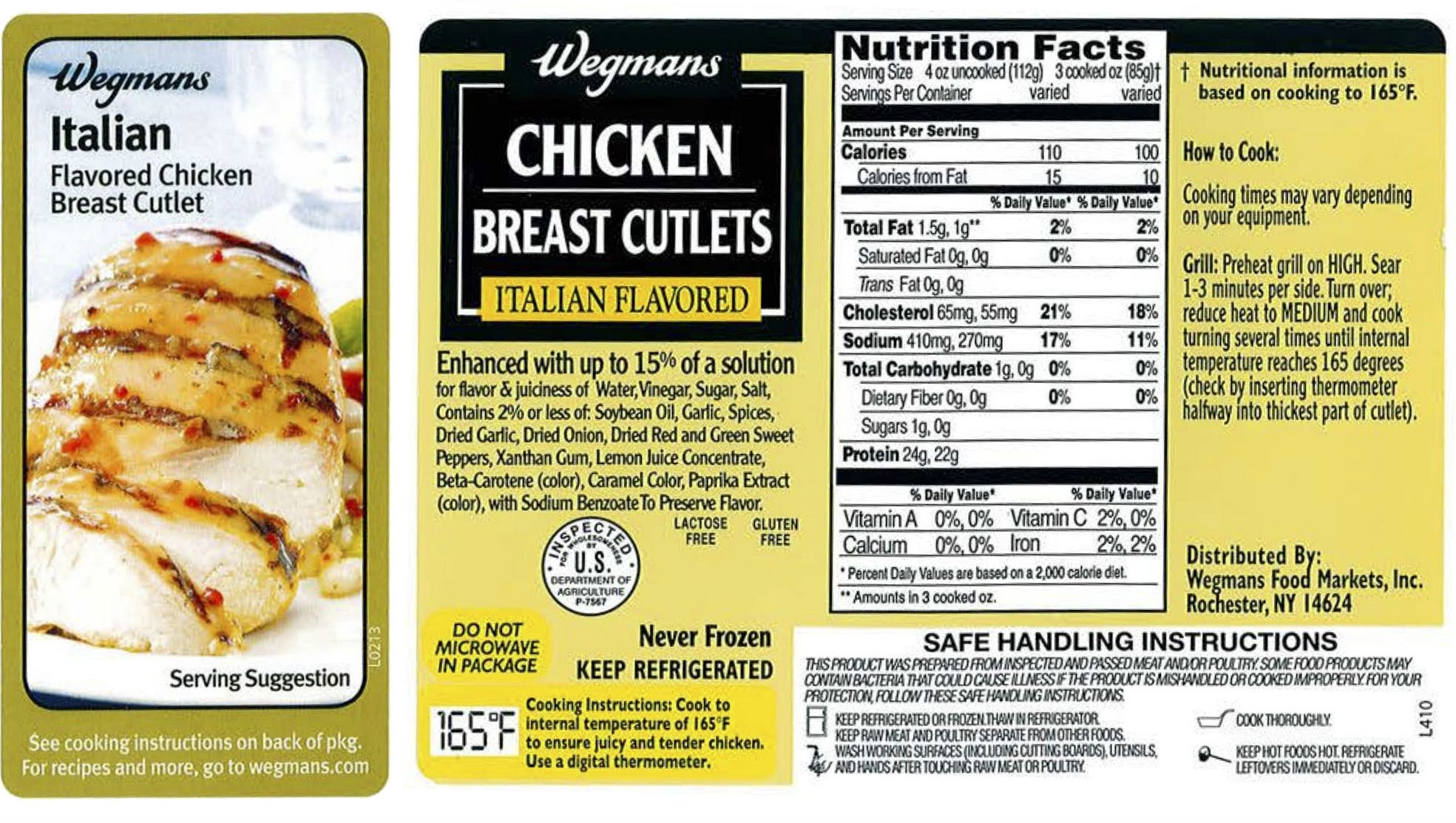 Wegmans Recalls Three Marinated Chicken Products