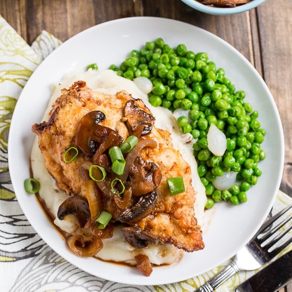 Southern Fried Chicken Breasts With Cremini Sweet Onion Gravy