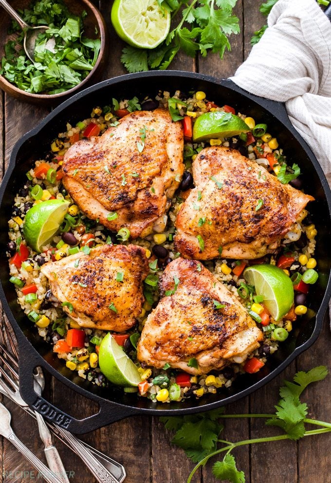 Skillet Chili Lime Chicken Thighs With Confetti Cauliflower