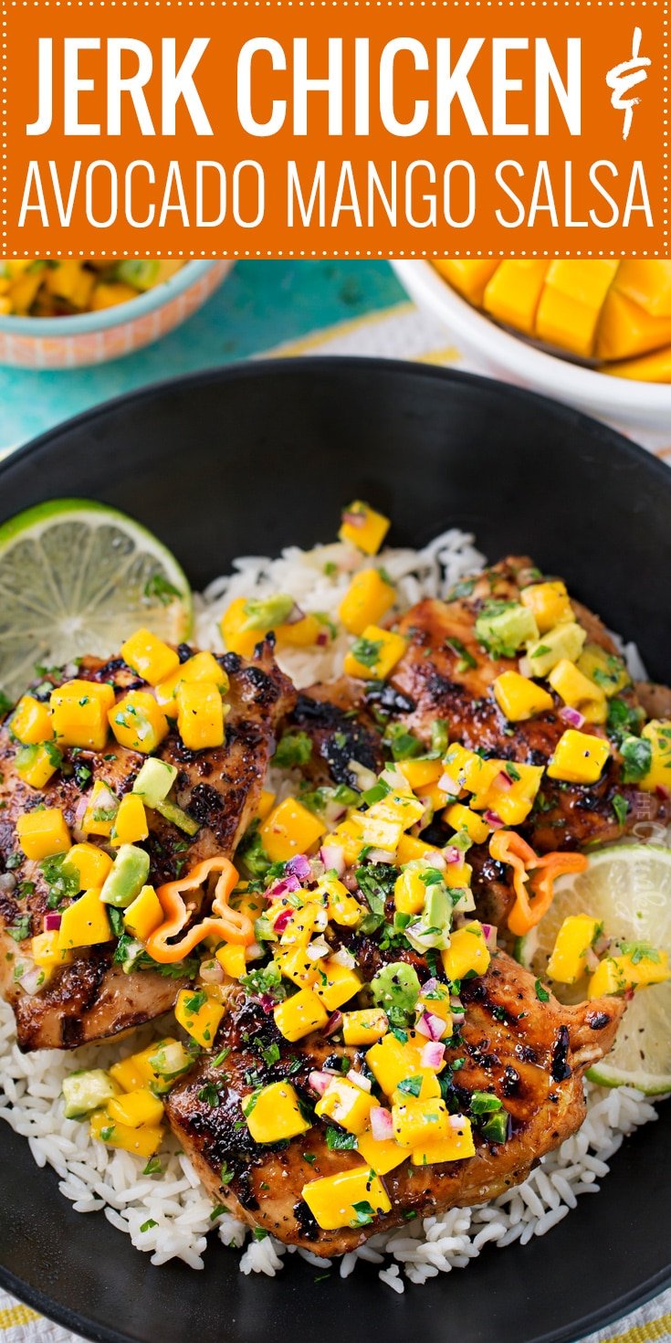 Jerk Chicken Thighs With Avocado Mango Salsa The Chunky Chef