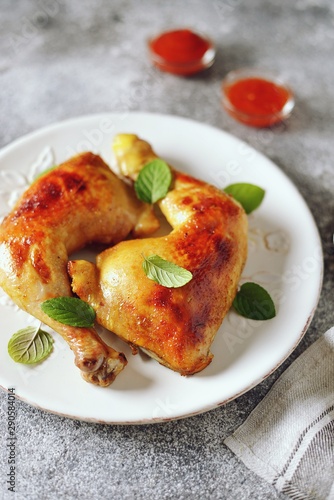 Roasted Chicken Legs With Fresh Mint Buy This Stock Photo
