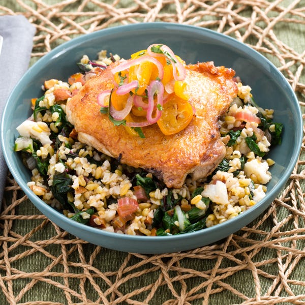 Crispy Chicken Thighs With Kumquat Relish Freekeh Salad
